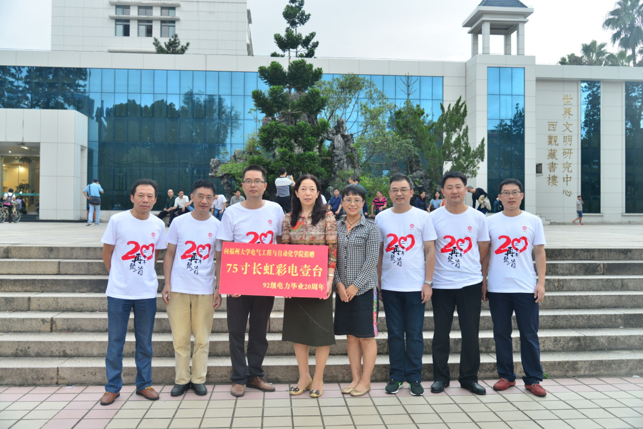 为表达培育之恩、祝福之情,在这次毕业20周年聚会中,92电力向加拿大28开奖 捐赠了壹台75寸长虹彩电。