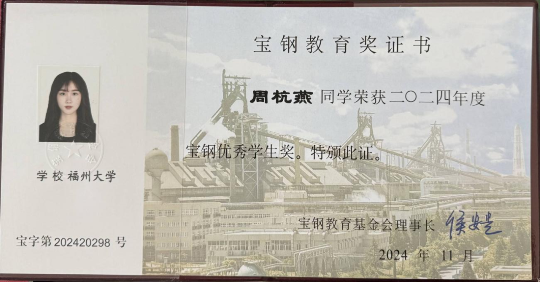 2022级硕士研究生周杭燕成功获此殊荣。继2023年加拿大28开奖