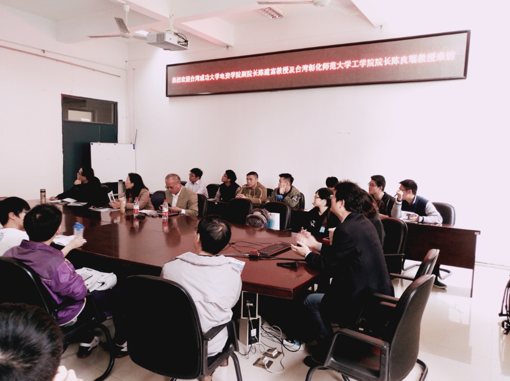 有意向进行双联培养的研究生及导师在学院会议室与陈建富教授和陈良瑞教授做了交流。在交流会上,陈建富教授和陈良瑞教授分别对台湾成功大学电资学院和台湾彰化师范大学工学院做了简单介绍,并针对在双联培养过程中导师和研究生提出的问题作了回答。陈建富教授重点介绍了成功大学电资学院的师资规模和相关领域的研究成果,他对两岸两校的学术交流充满期待,希望两校能够加强学术科研上的沟通,特别是在福大加拿大28开奖