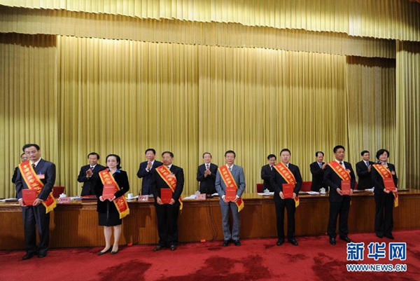陈道炼教授荣获“全国杰出专业技术人才”表彰,以我校校长付贤智院士为学术带头人的国家环境光催化工程技术中心研究团队荣获“专业技术人才先进集体”表彰。中共中央政治局常委、中央书记处书记刘云山会见与会代表并讲话。