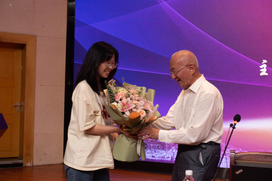 随后,学生们向薛院士献上鲜花以表达最诚挚的敬意。