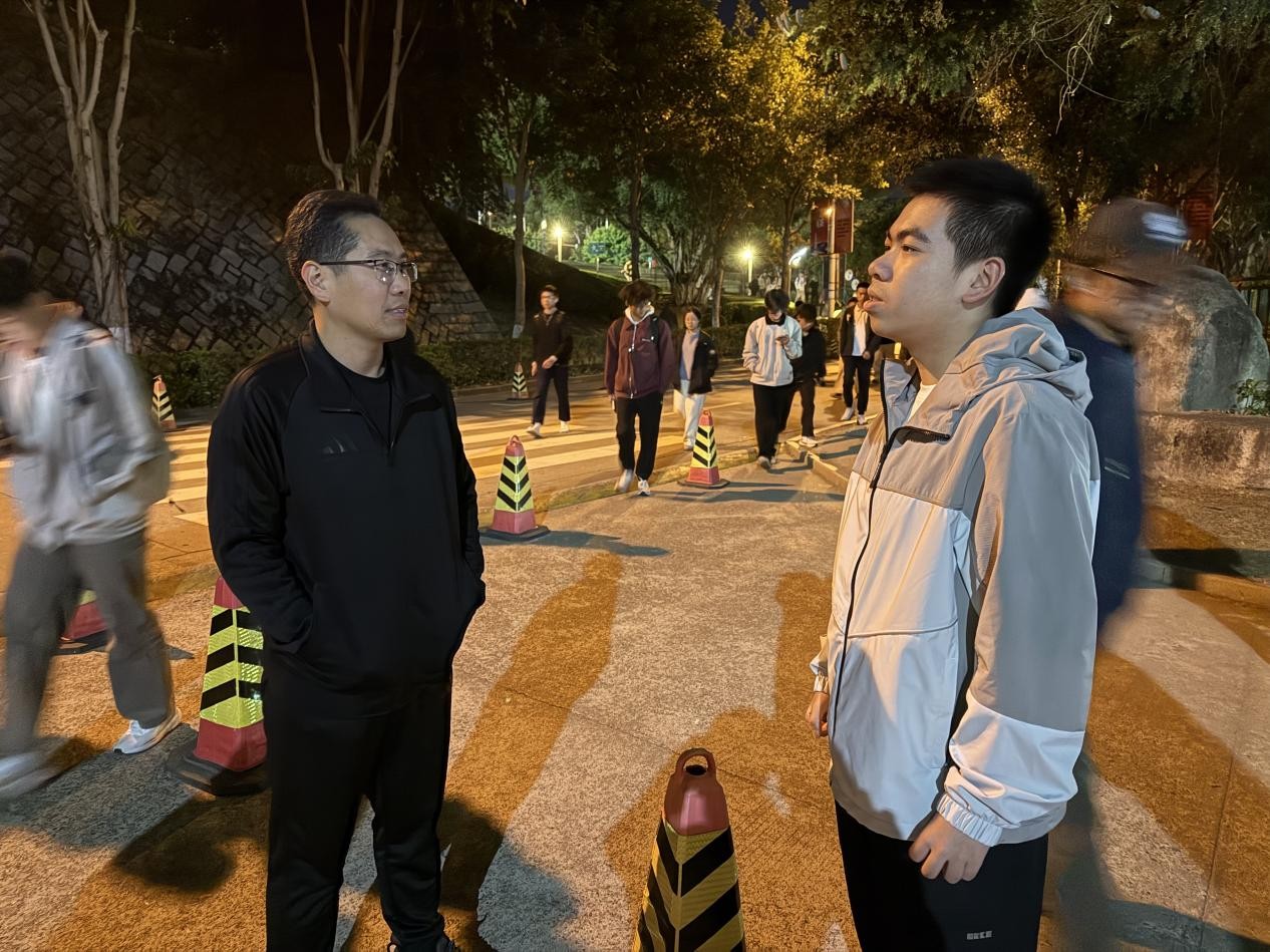 会议结束后杜领军副书记深入学生一线,关心慰问学生的学习生活情况,了解同学们的作息安排和学习进度,他勉励同学们要珍惜大学时光,既要勤奋学习,也要注重全面发展。